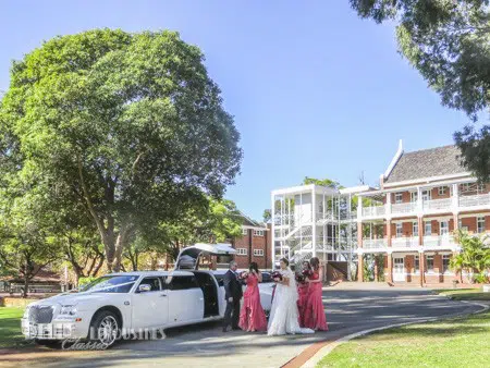 Thomas and the groom’s party were collected and dropped at the ceremony before heading to Perth to collect the bridal party. Chauffeur Mark arranged with the College groundsperson to organise access to the chapel for the limousine so the wedding party had easy access to the Chrysler limo when departing.