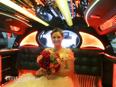 The Belle Classic Chrysler jet door limousine is a popular choice for couples seeking an ‘all in one limo’ mode of transport for their wedding. The fifth jet door allows superb access to the centre of the limousine for the bride and guests. The interior lights can be left in party mode as with this wedding or dimmed to white or the colour of your choice. The limo is fitted with an upgraded music system driven from the rear to play your selection of music from CD, DVD or your iPhone. You control the volume and track selection.