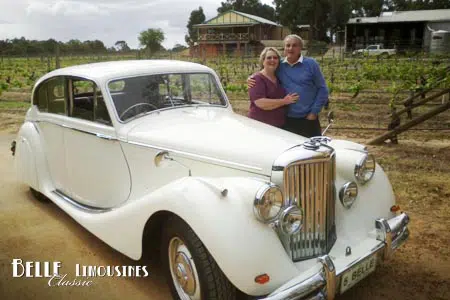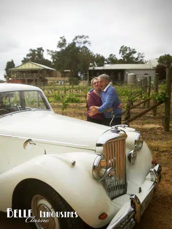 Mary’s husband fell in love with the Jaguar Mk5 sedan one day when they noticed it being refueled at our local garage. She plotted to give him a birthday surprise with a Swan Valley wine tour in the 1950 Jaguar. The couple enjoyed a fun day visiting a mix of Swan valley attractions with a long lunch at one of the wineries.